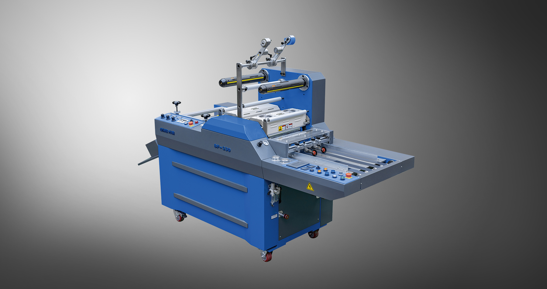 機(jī)器小巧精致,操作簡(jiǎn)單,配備雙氣漲軸、電動(dòng)液壓系統(tǒng)、氣動(dòng)分切等實(shí)用配置,是印后加工的好幫手。